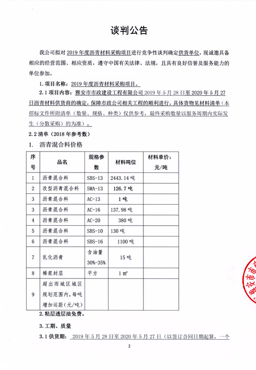 市政公司2019年度瀝青材料采購項(xiàng)目競爭性談判公告