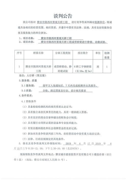 雅安市隴西河景觀天橋工程競爭性談判公告
