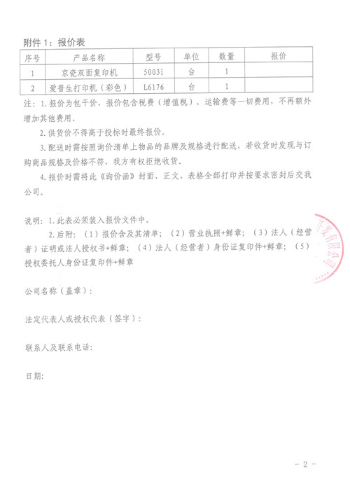 城投公司打印機(jī)詢價(jià)函