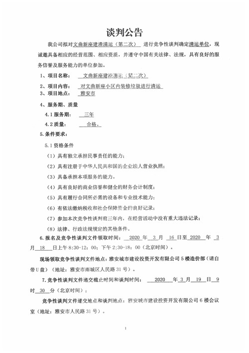 城投物業(yè)公司文曲新座建渣清運(yùn)(第二次)競爭性談判公告