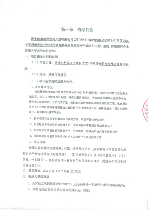 西康記憶等9個(gè)項(xiàng)目2020年專項(xiàng)債券可行性研究咨詢服務(wù)招標(biāo)公告