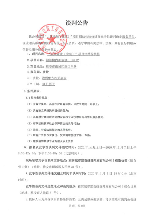 城投建工“大興壹號(hào)(北苑)”項(xiàng)目鋼結(jié)構(gòu)裝修競(jìng)爭(zhēng)性談判公告