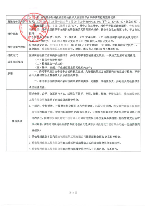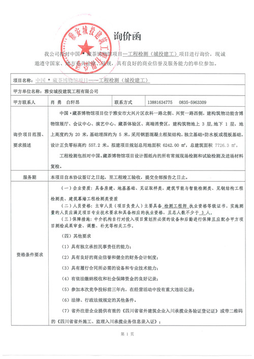 中國(guó)·藏茶博物館項(xiàng)目——工程檢測(cè)(城投建工)項(xiàng)目詢價(jià)函