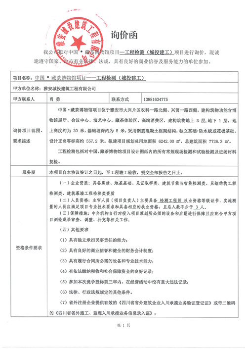 中國(guó)·藏茶博物館項(xiàng)目工程檢測(cè)單位詢價(jià)函(第二次).doc