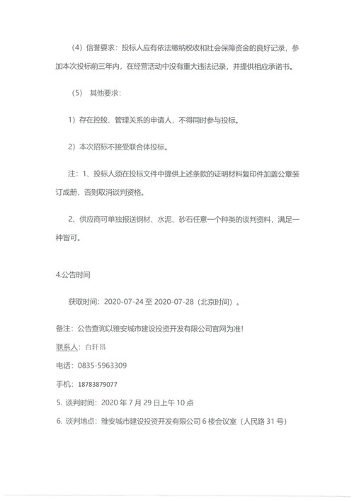 2020年7月-9月城投建筑工程有限公司鋼材、砂石、水泥、商品砼集中采購(gòu)供應(yīng)商競(jìng)爭(zhēng)性資格談判公告
