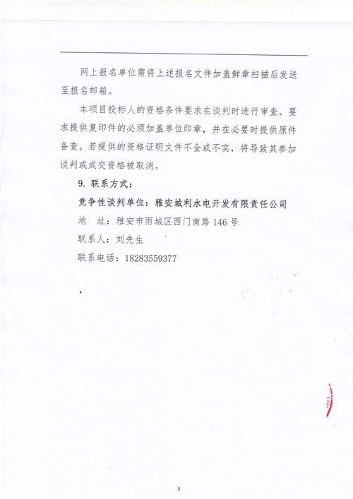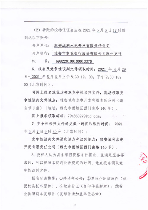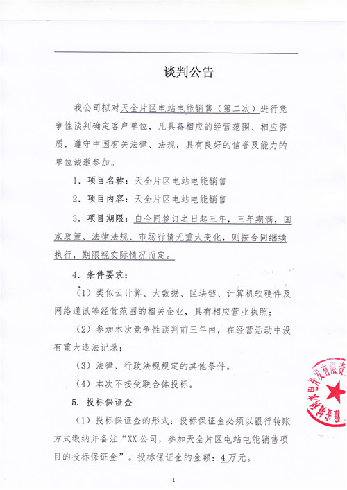 城利水電公司天全片區(qū)電站電能銷售(第二次)競(jìng)爭(zhēng)性談判