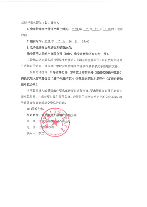 黎明人居公司黎明·蒙頂壹號臨時售樓部裝飾裝修競爭性磋商公告