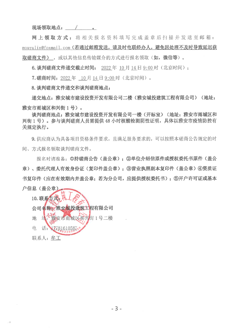 蒙頂壹號項目主樓及北側大門等幕墻工程(第二次)談判磋商公告