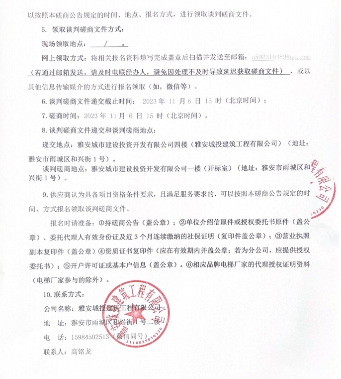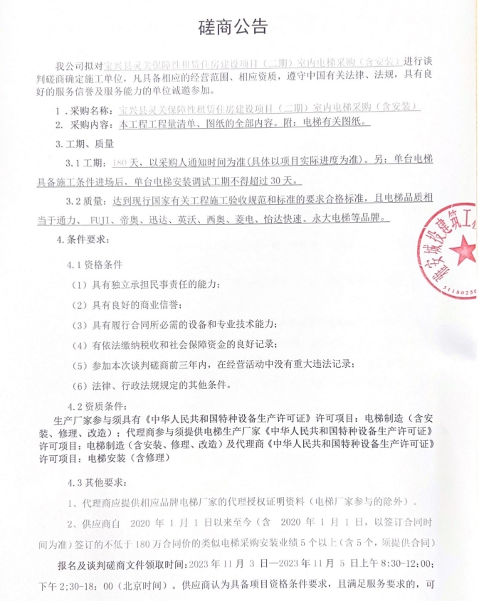 寶興縣靈關(guān)保障性租賃住房建設(shè)項(xiàng)目(二期)室內(nèi)電梯采購(含安裝)談判磋商公告