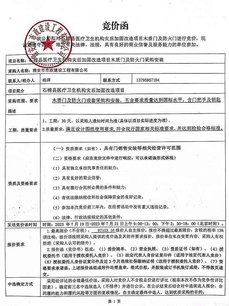石棉縣醫(yī)療衛(wèi)生機(jī)構(gòu)災(zāi)后加固改造項(xiàng)目木質(zhì)門及防火門采購(gòu)安裝競(jìng)價(jià)公告
