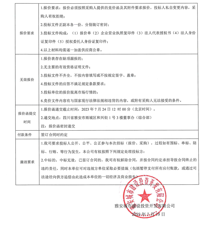 雅安城市建設(shè)投資開發(fā)有限公司辦公用品采購項目競價公告