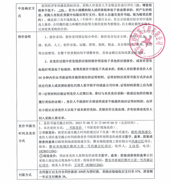 雅安市西康記憶生態(tài)文旅街區(qū)項目一號地塊項目燈具及輔材競價采購公告