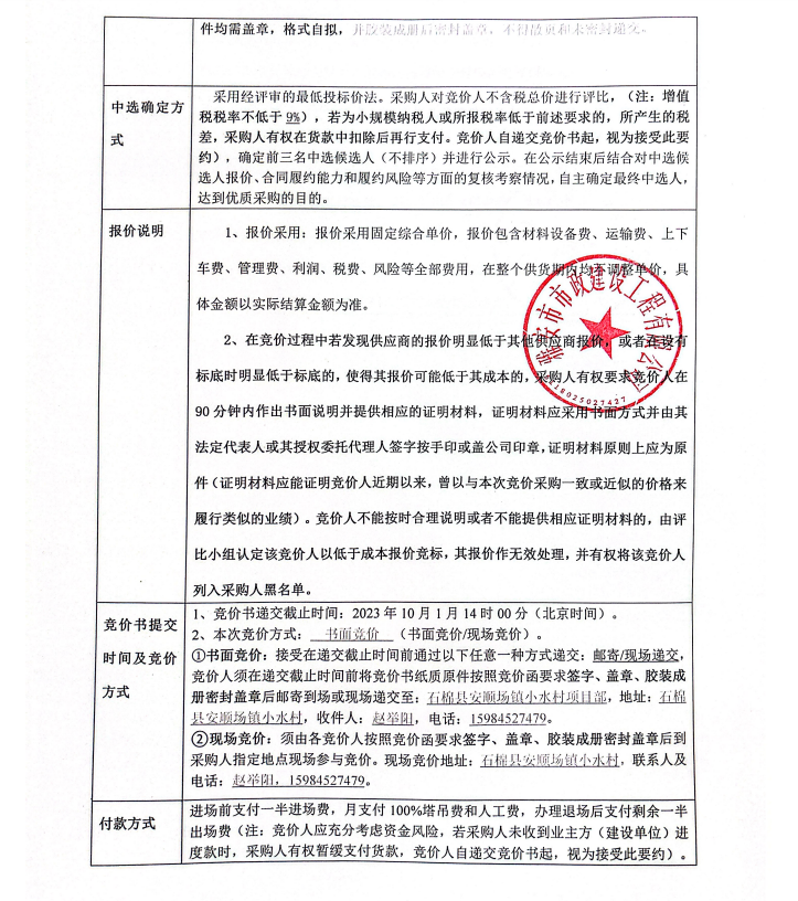 瀘石高速石棉縣段安順場鎮(zhèn)小水村集中安置點建設(shè)工程塔機租賃采購競價公告