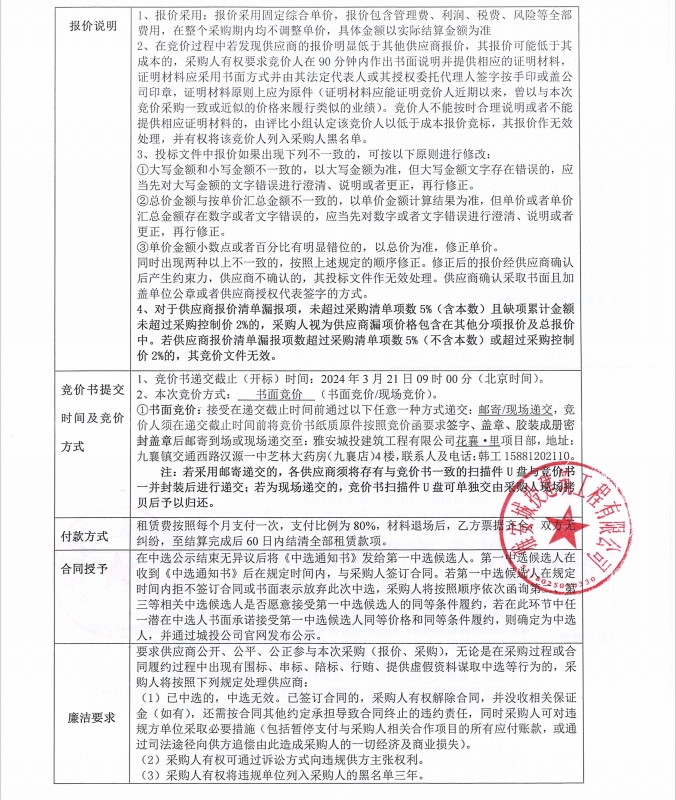 花襄·里項目加固件租賃競價公告