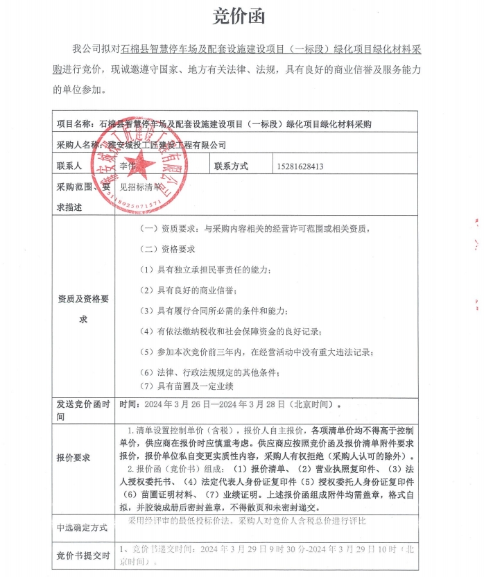 石棉縣智慧停車場及配套設施建設項目(一標段)綠化項目綠化材料采購競價公告