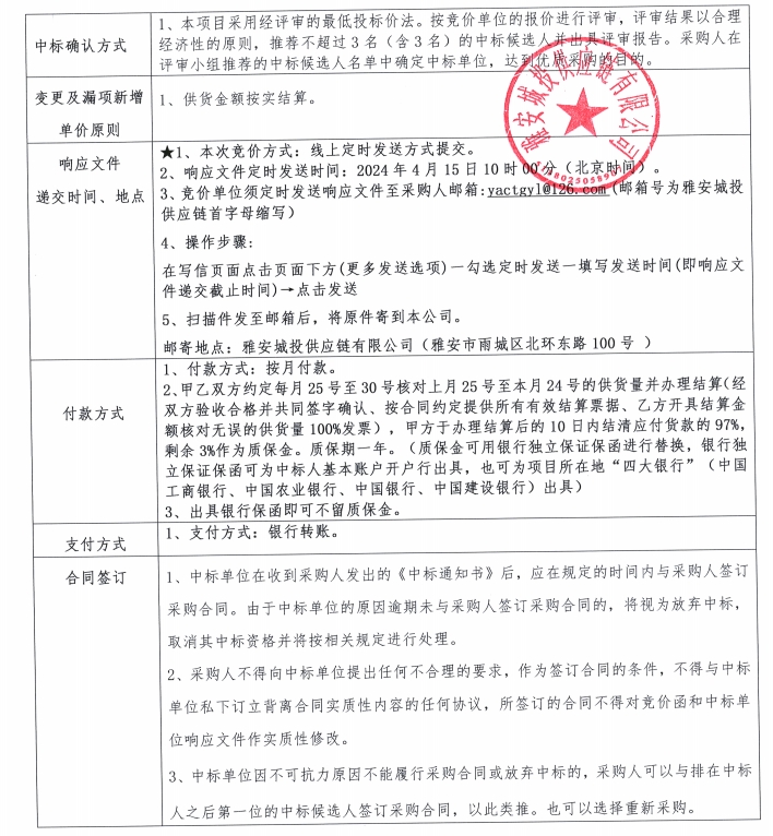 雅安城投供應(yīng)鏈有限公司電線電纜采購競價公告