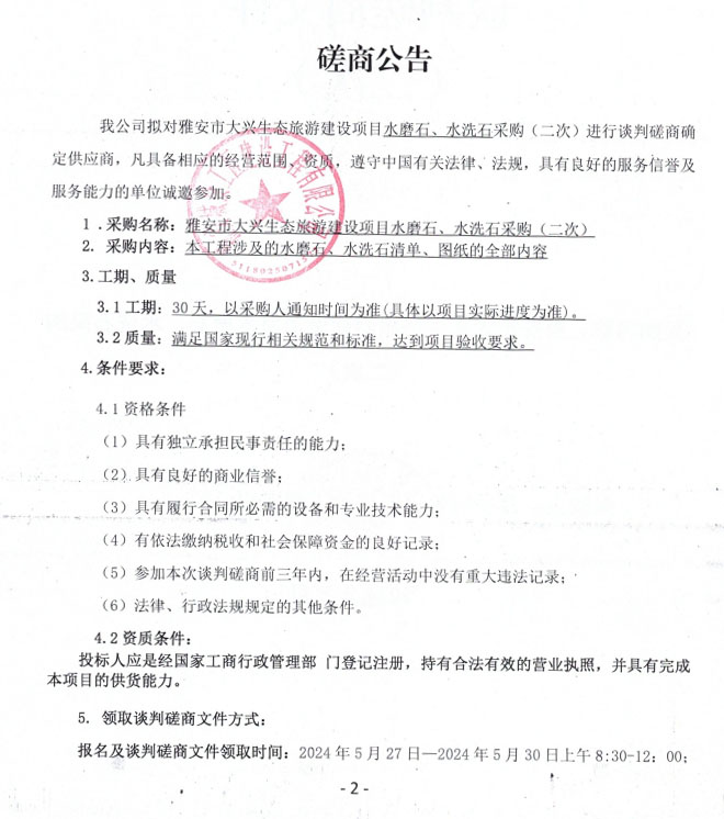 附件1:雅安市大興生態(tài)旅游建設(shè)項(xiàng)目水磨石、水洗石采購(gòu)(二次)磋商文件