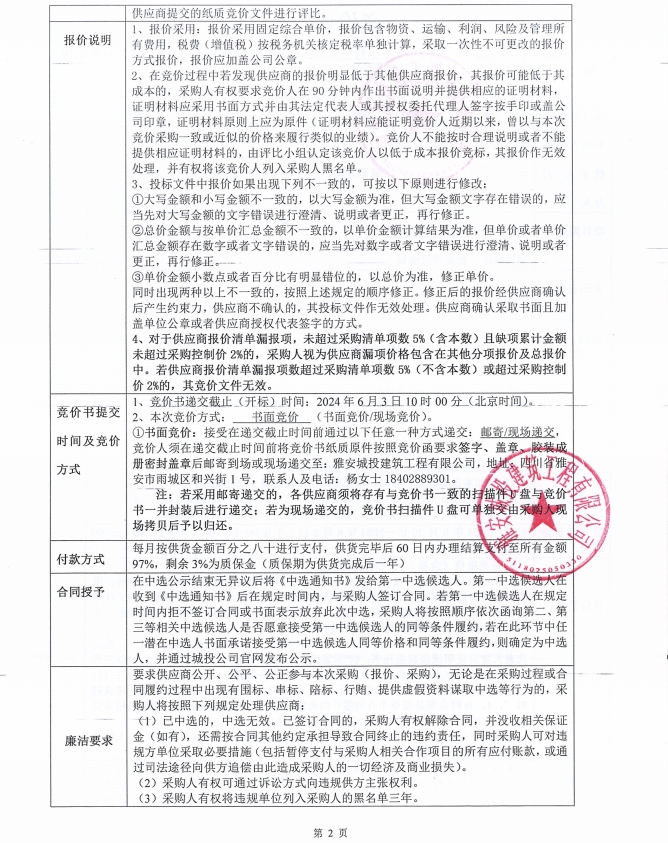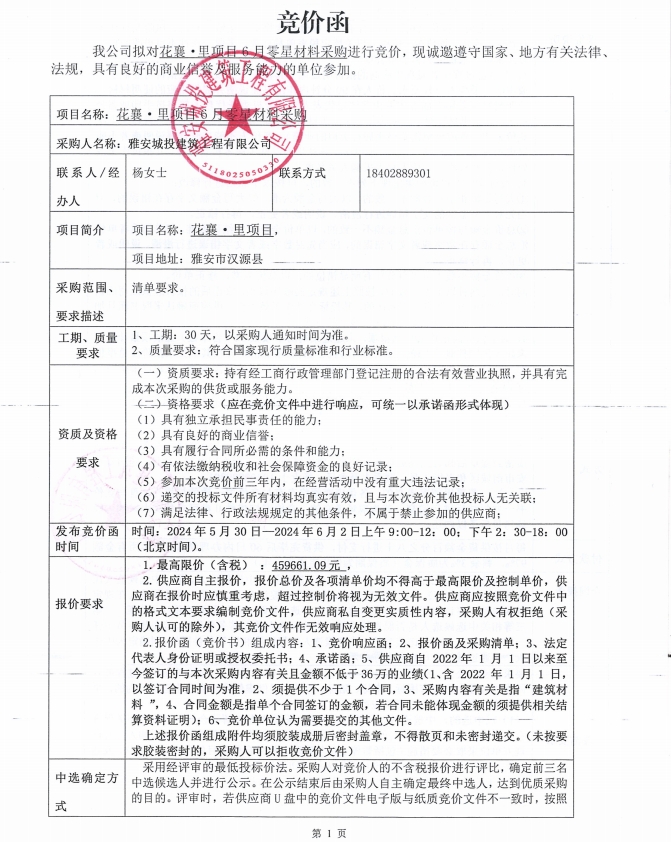 花襄·里項(xiàng)目6月零星材料采購競價(jià)公告