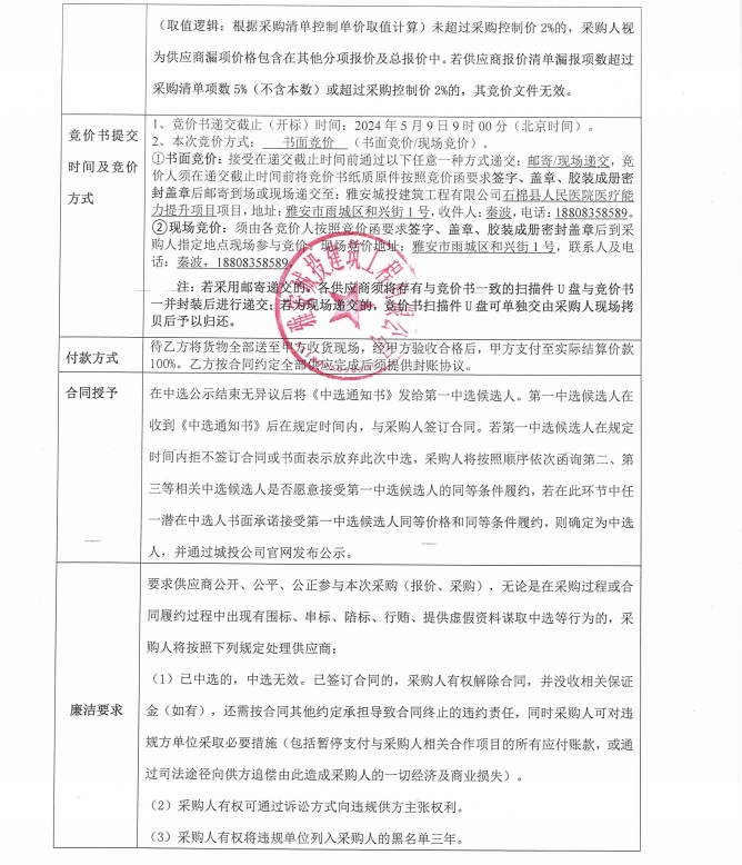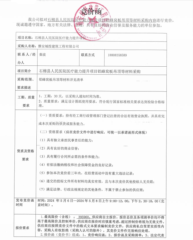 石棉縣人民醫(yī)院醫(yī)療能力提升項目鋁蜂窩板吊頂?shù)炔牧喜少弮热莞們r公告