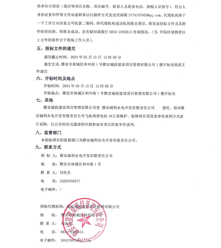 雅安城利水電開發(fā)有限責(zé)任公司飛機(jī)壩變電站1#主變維護(hù)、檢修項目公告
