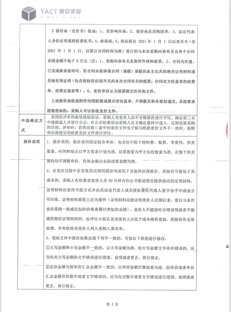 石棉縣大熊貓國家公園保護(hù)管理設(shè)施項(xiàng)目(一期)管件材料租賃(第二次)競(jìng)價(jià)公告