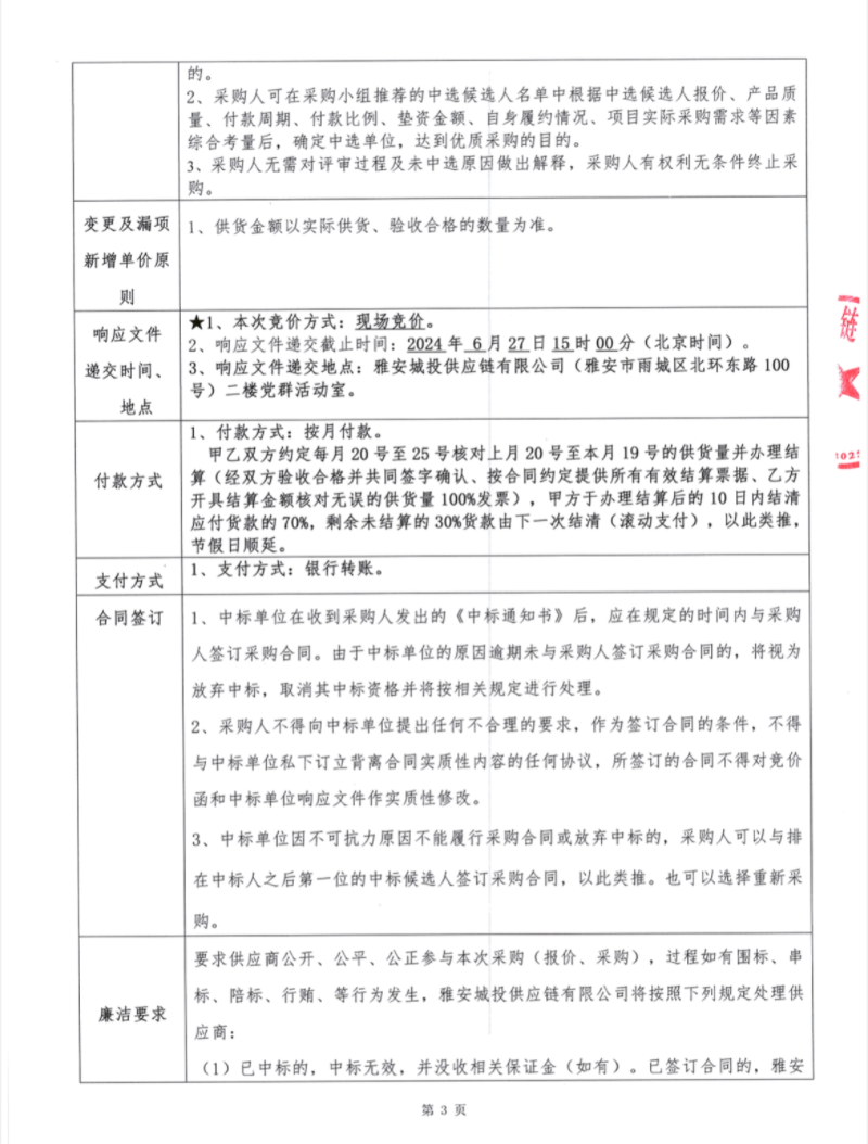 雅安城投供應鏈有限公司級配碎石采購競價公告