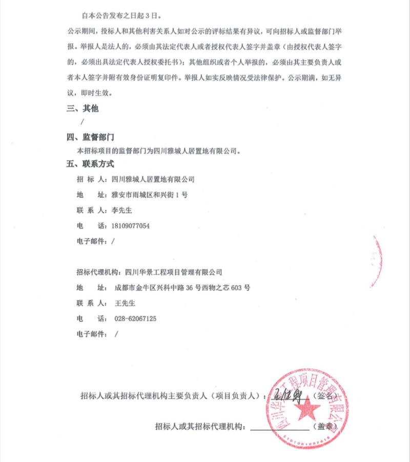 雅州印項目清單編制服務中標候選人公示