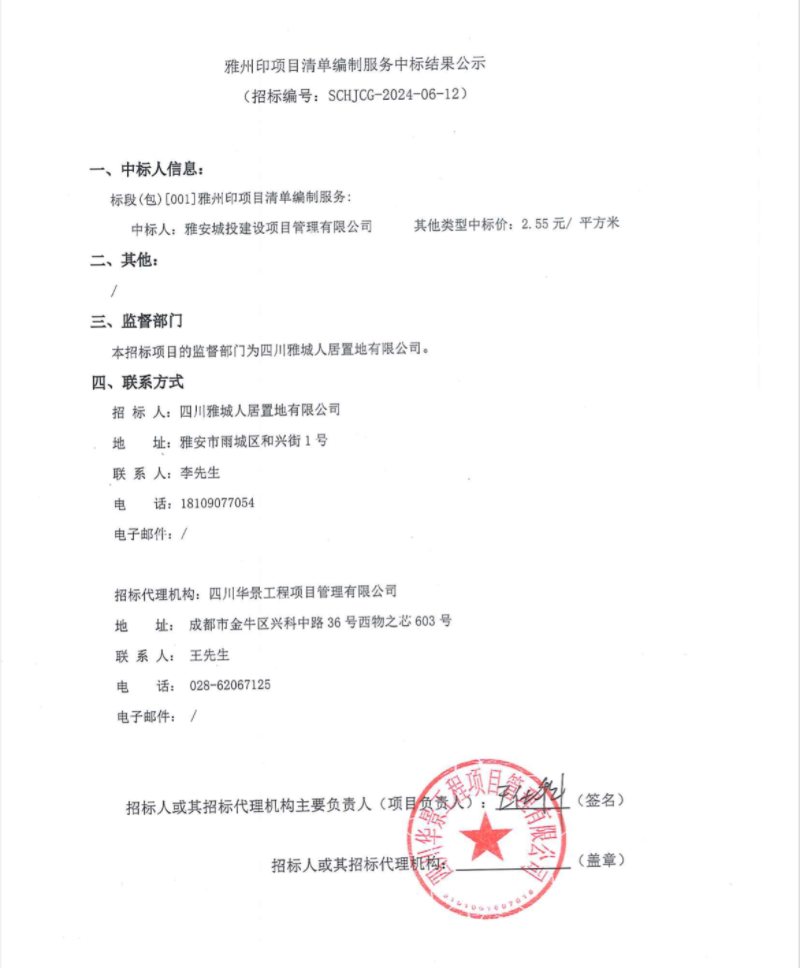 雅州印項(xiàng)目清單編制服務(wù)中標(biāo)結(jié)果公示