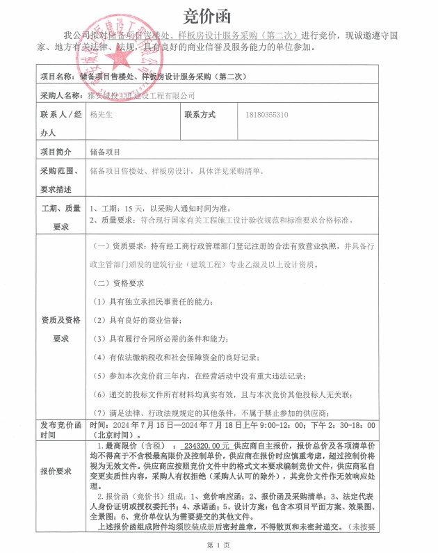 競價(jià)函-設(shè)計(jì)服務(wù)采購-儲備項(xiàng)目(第二次)