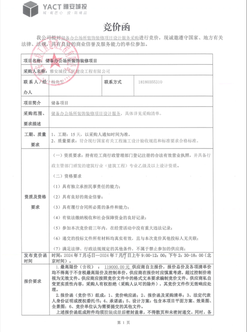 儲備辦公場所裝飾裝修項目競價公告